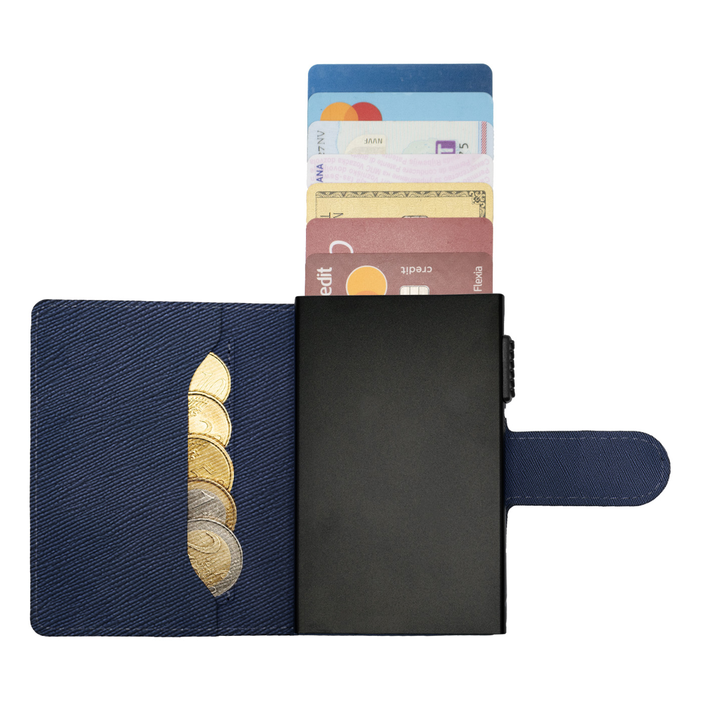 ETRES SMART WALLET SLIDE PORTACARTE IN METALLO SAFFIANO DARK BLU