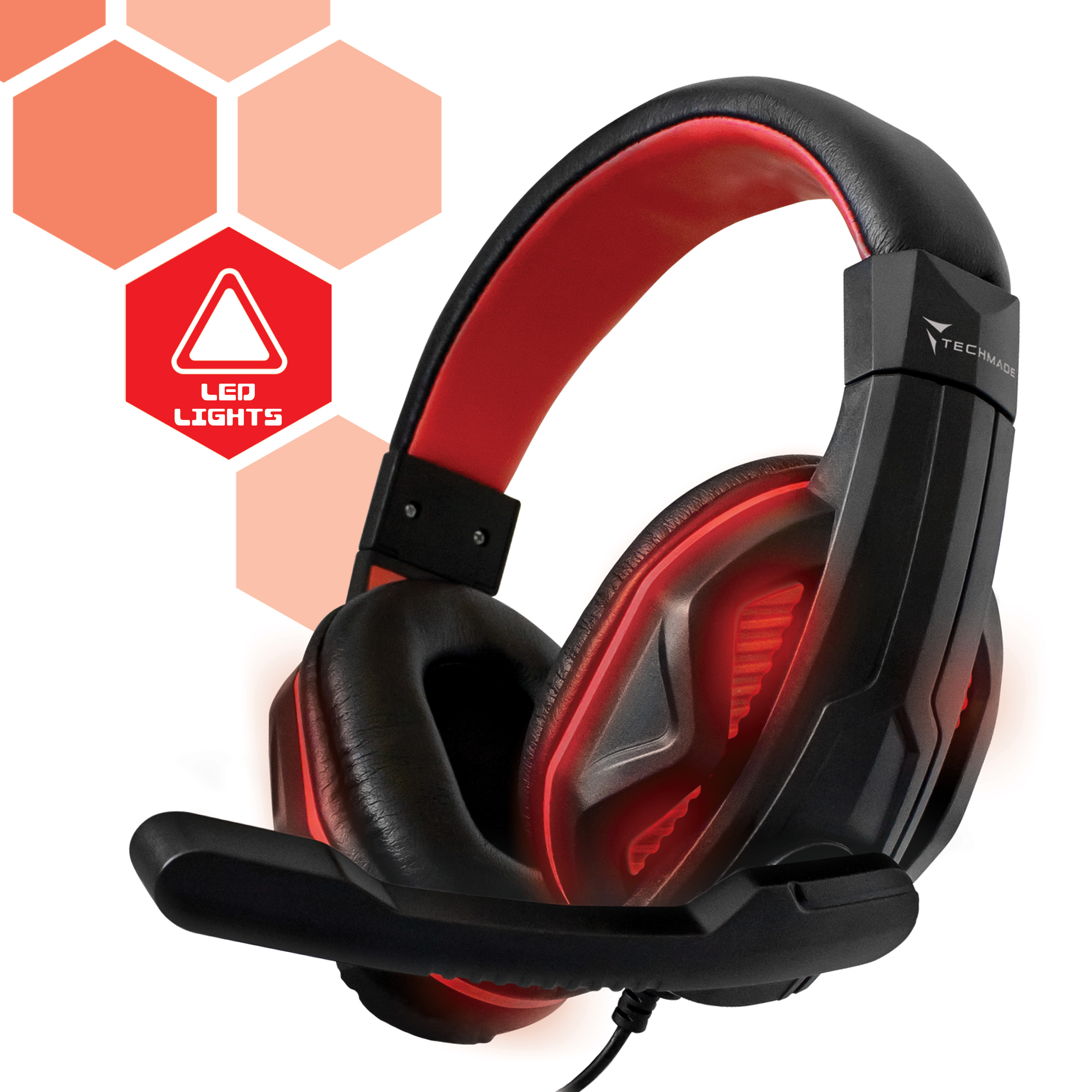 TECHMADE CUFFIA GAMING CON LUCE 3.5MM BLACK RED