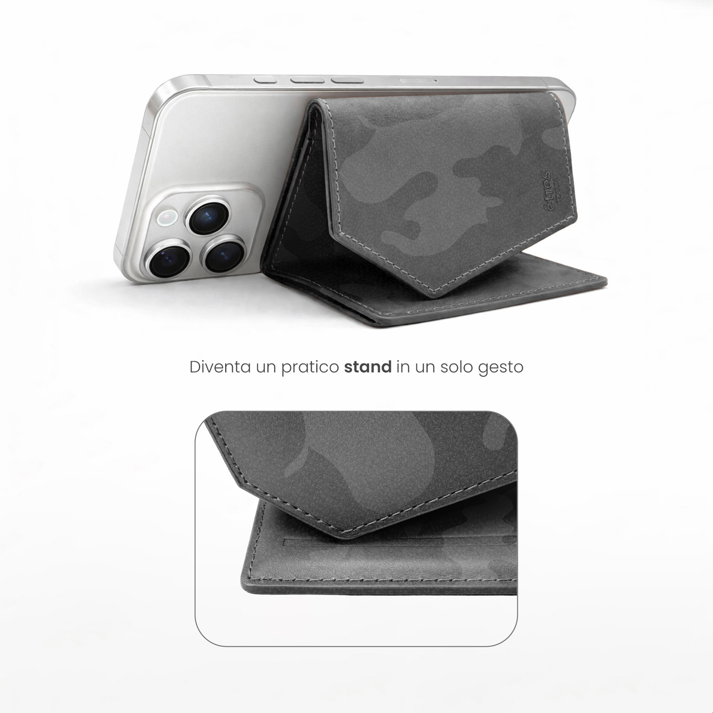 VW4gY2xhc3NpY28gcml2aXNpdGF0byBwZXIgbCd1b21vIGNvbnRlbXBvcmFuZW8uIElsIFJvbWEgQ2Ftb3VmbGFnZSBkaSZuYnNwO8OKdHJlcyZuYnNwO3NpIGFwcGxpY2EgbWFnbmV0aWNhbWVudGUgYWwgcmV0cm8gZGVsIHRlbGVmb25vIGNvbiB1biBzZW1wbGljZSBnZXN0bywgYWRhdHRhbmRvc2kgYSBxdWFsc2lhc2kgZGlzcG9zaXRpdm8gZ3JhemllIGFsbCdhY2Nlc3NvcmlvIGluIGRvdGF6aW9uZS4=
